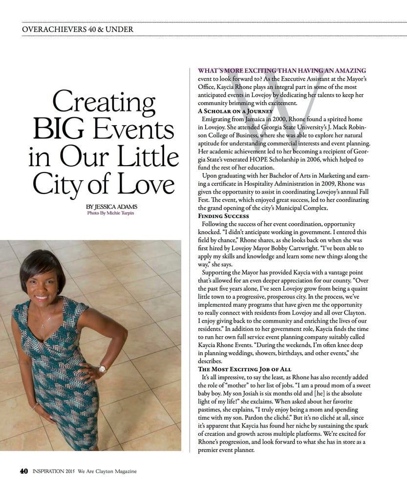 Hello, I'm Kaycia Rhone, a seasoned event specialist serving the Metro-Atlanta area. I bring a wealth of knowledge and years of event planning experience to ensure my clients' events are a success, while alleviating the stress of planning and keeping their vision at the forefront. Through personal consultations, I dive into understanding your style and aspirations, allowing me to meticulously craft an event that truly reflects your personality and desires.